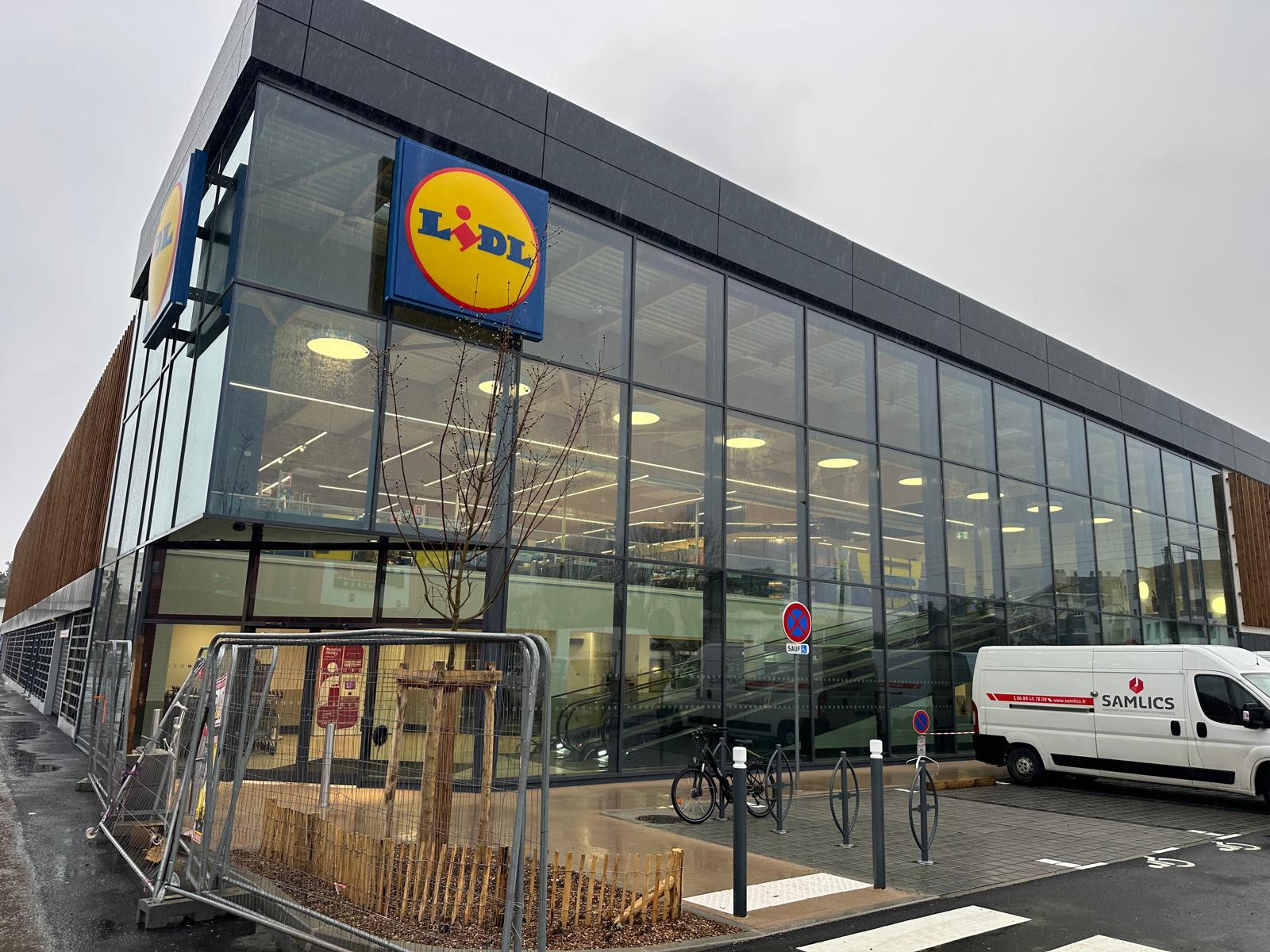 Façade vitrée du nouveau magasin Lidl Angers La Roseraie